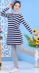 Ensemble décontracté pour femme : Pantalon Gris + Tunique de couleur blanche à rayures bleues marines - REF. 30357 (29.90 €)