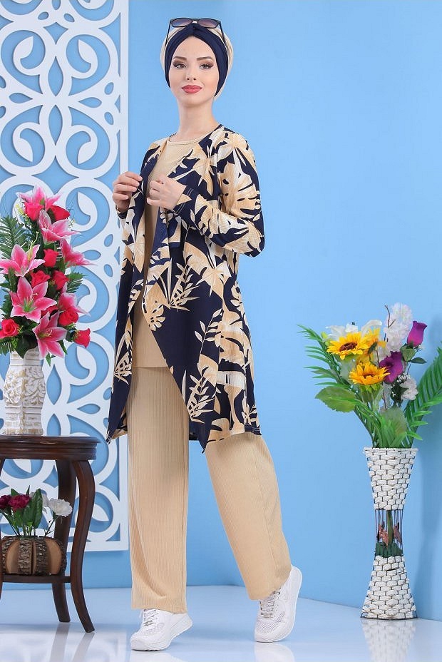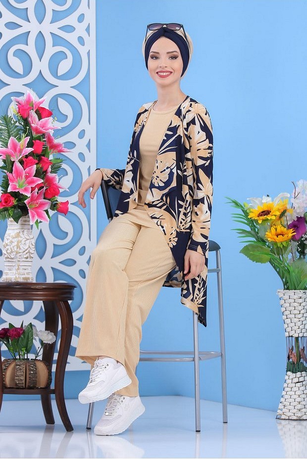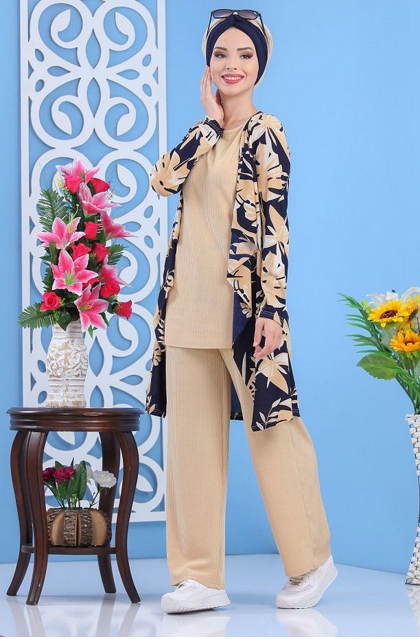 Ensemble casual femme veste et pantalon (Vetement Hijab) - Couleur beige - REF. 37512 (35.00 €)