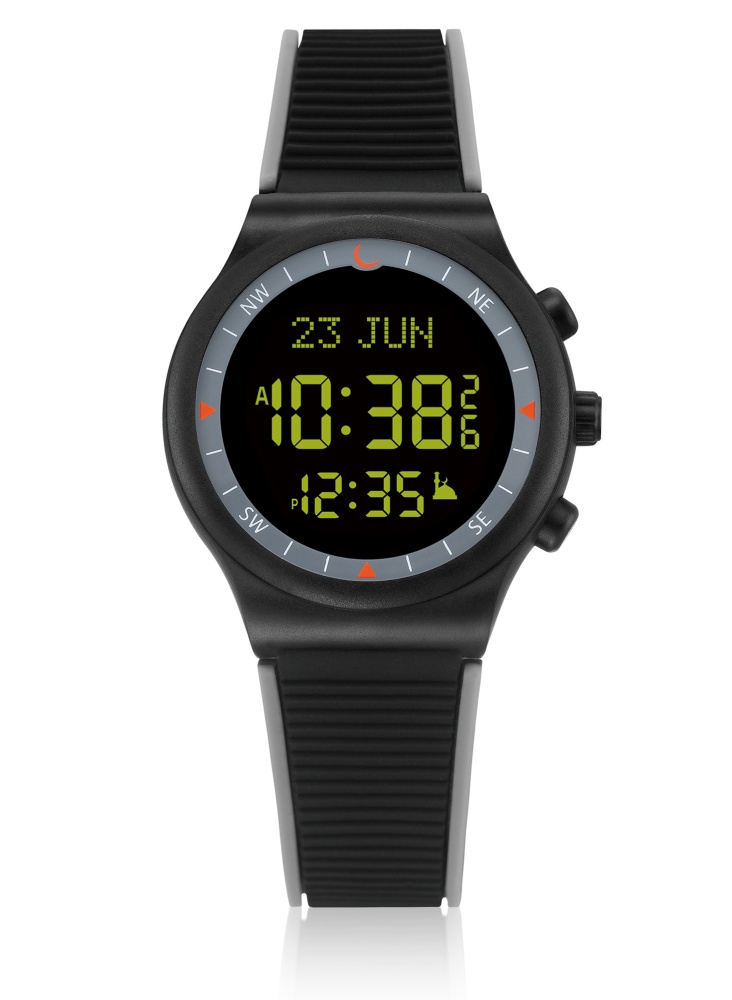 Montre électronique Al-Sahar avec boussole et calcul automatique des heures de prières - Sport - Grise avec cadran noir - REF. 30919 (42.00 €) - En Promotion à 38.00 €