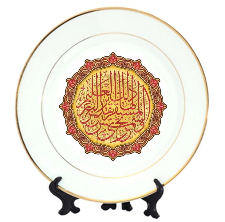 Assiette en porcelaine avec bordure dorée et calligraphie "Au Nom d'Allah, Le Clément, Le Miséricordieux" - بسم الله الرحمن الرحيم - REF. 14099 (14.90 €)