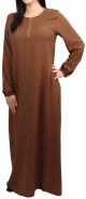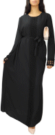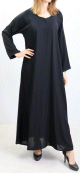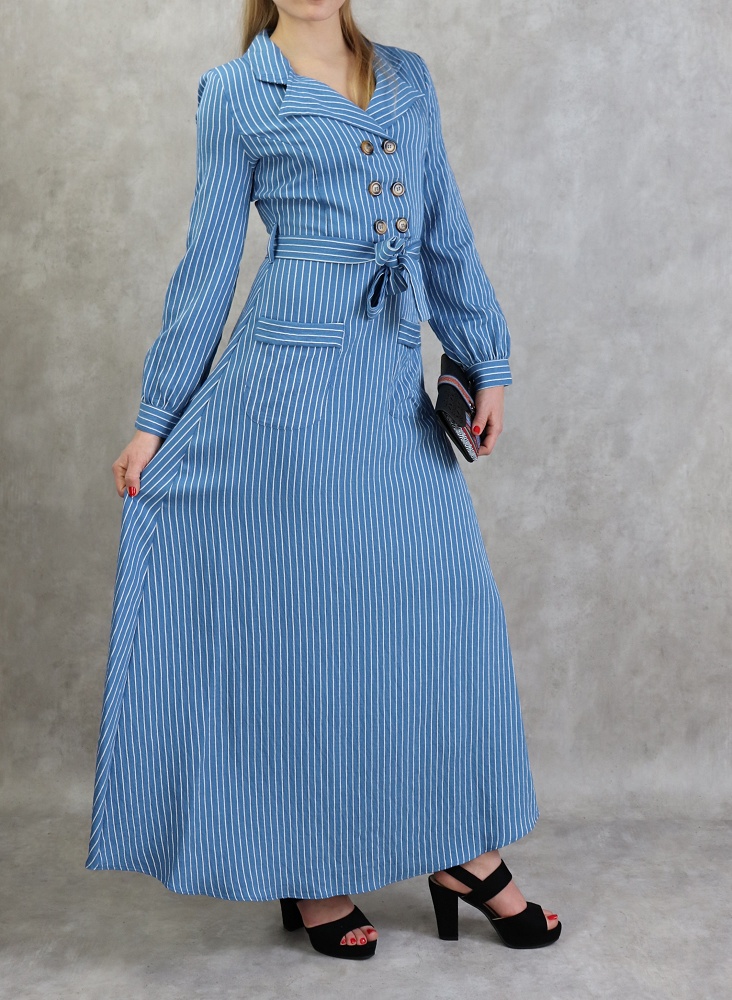 Robe longue, col tailleur, manches finition bouton aux poignets, taille cintrée, ceinture assortie à passants, fermeture boutons sur le buste, 2 grandes poches, tissu non transparent, bonne tenue.