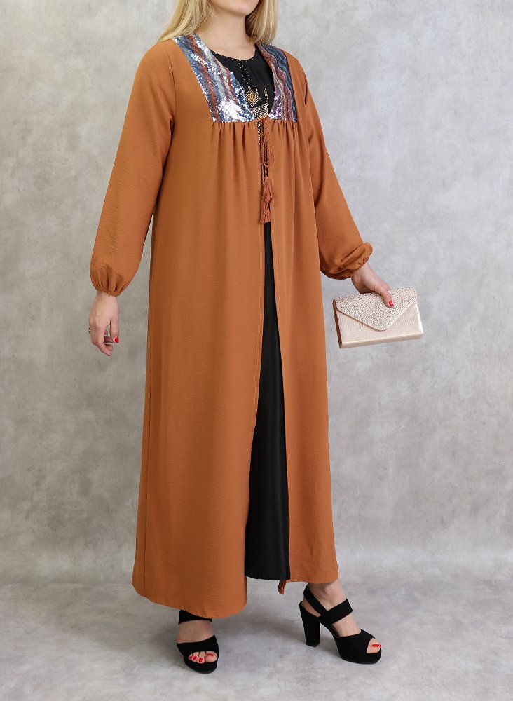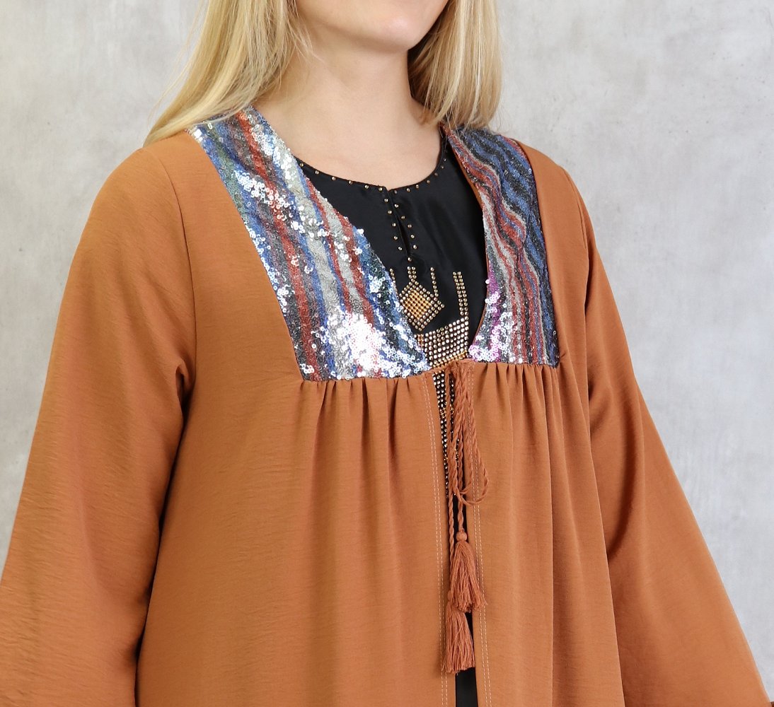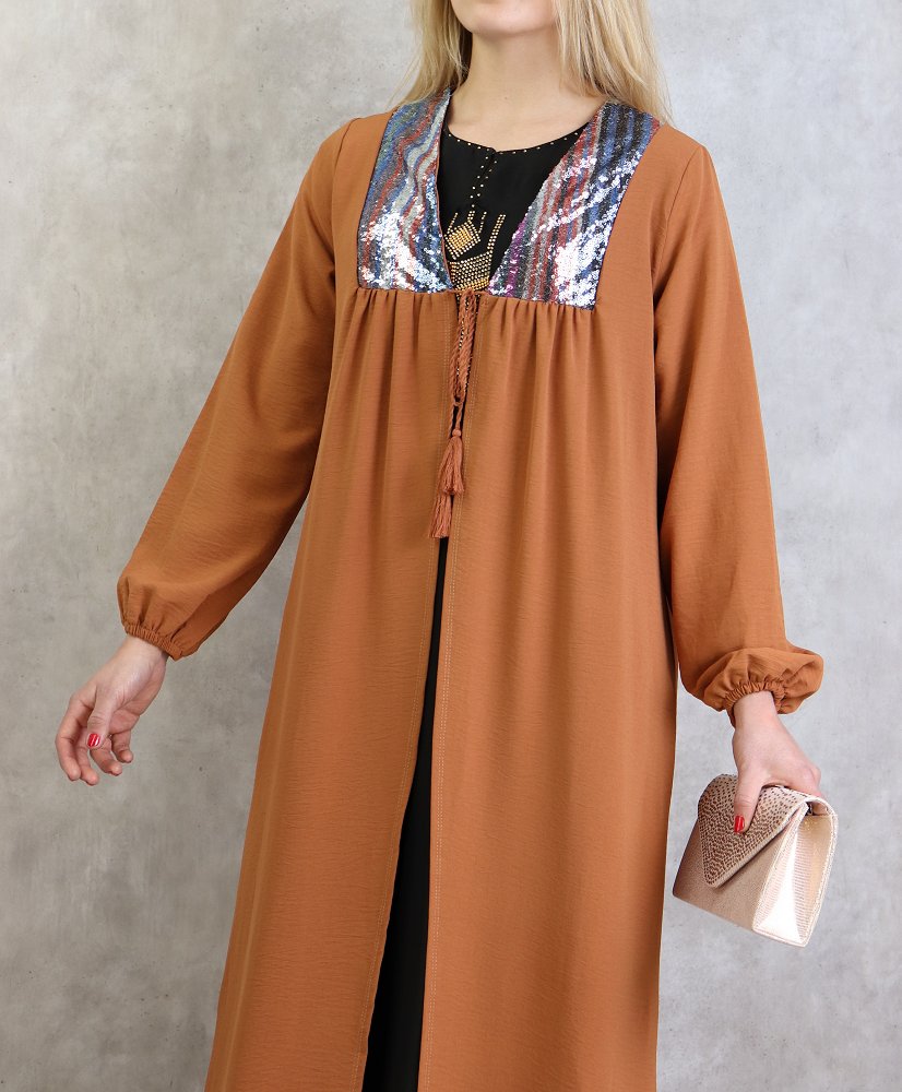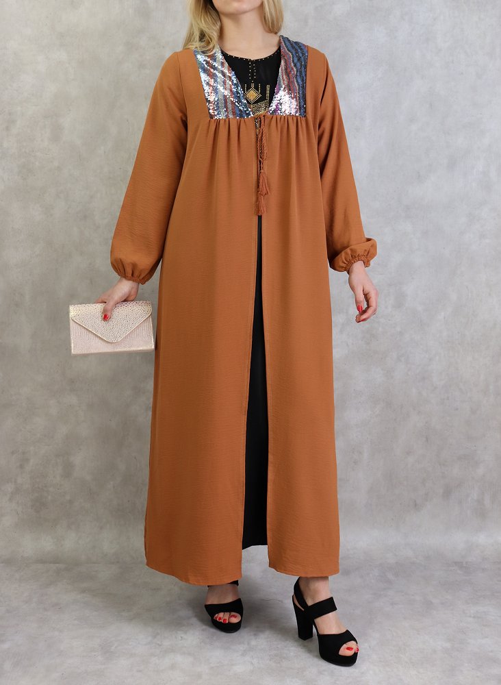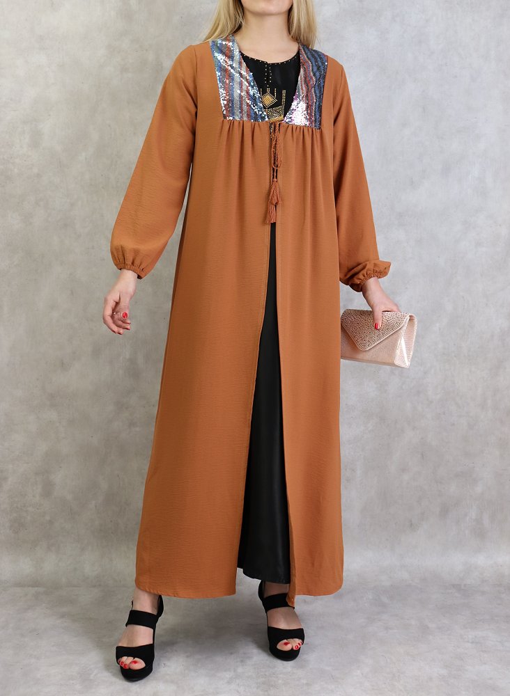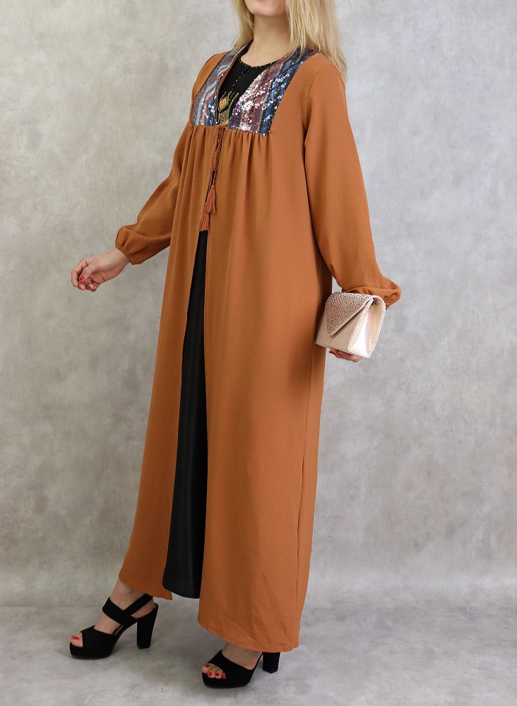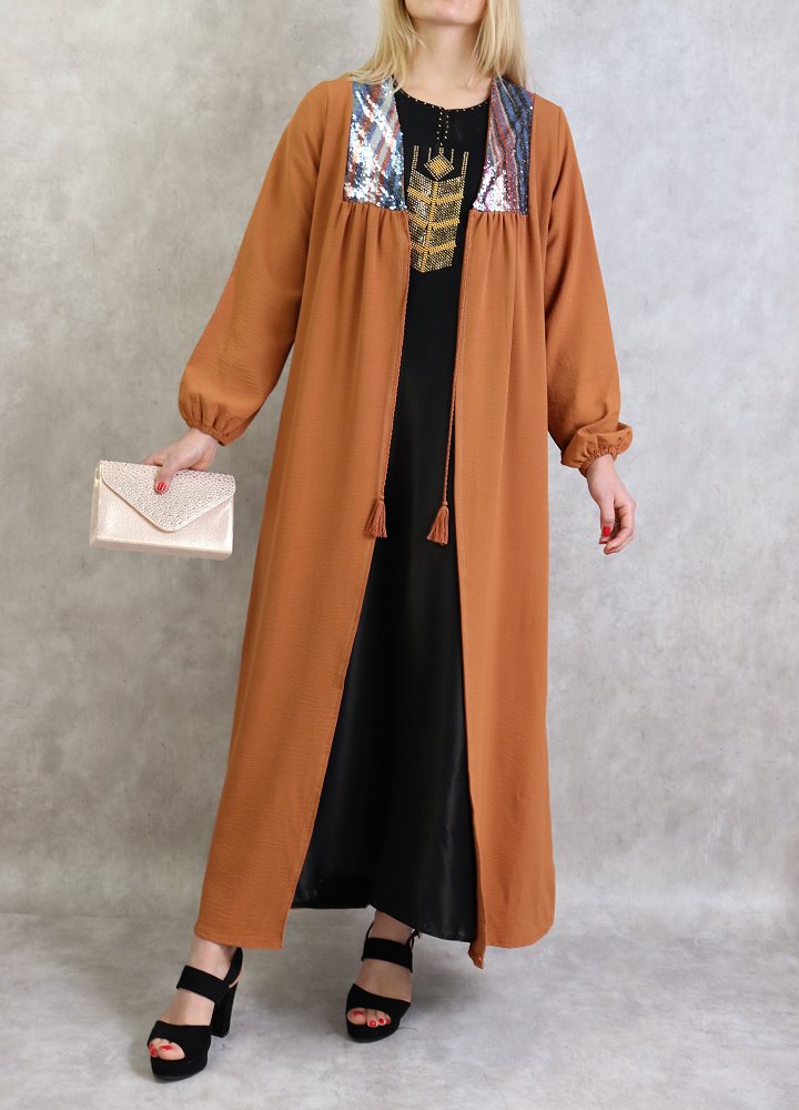 Kimono long avec strass pour femme - Couleur Rouille Vetement & Accessoire