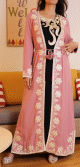 Robe longue avec décorations dorées et pompons de Couleur Rose - REF. 31864 (29.90 €)