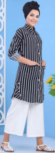 Tunique longue à rayures (Vetement femme voilée) - Couleur noir et bleu - REF. 35289 (16.90 €)