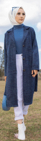 Veste longue style manteau pour femme (Vetement saison automne hiver) - Couleur bleue - REF. 34671 (29.00 €)