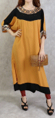 Robe longue tricolore pour femme musulmane (Vetement Hijab Tofisa France) - Couleur noir, moutarde et beige Vetement & Accessoire