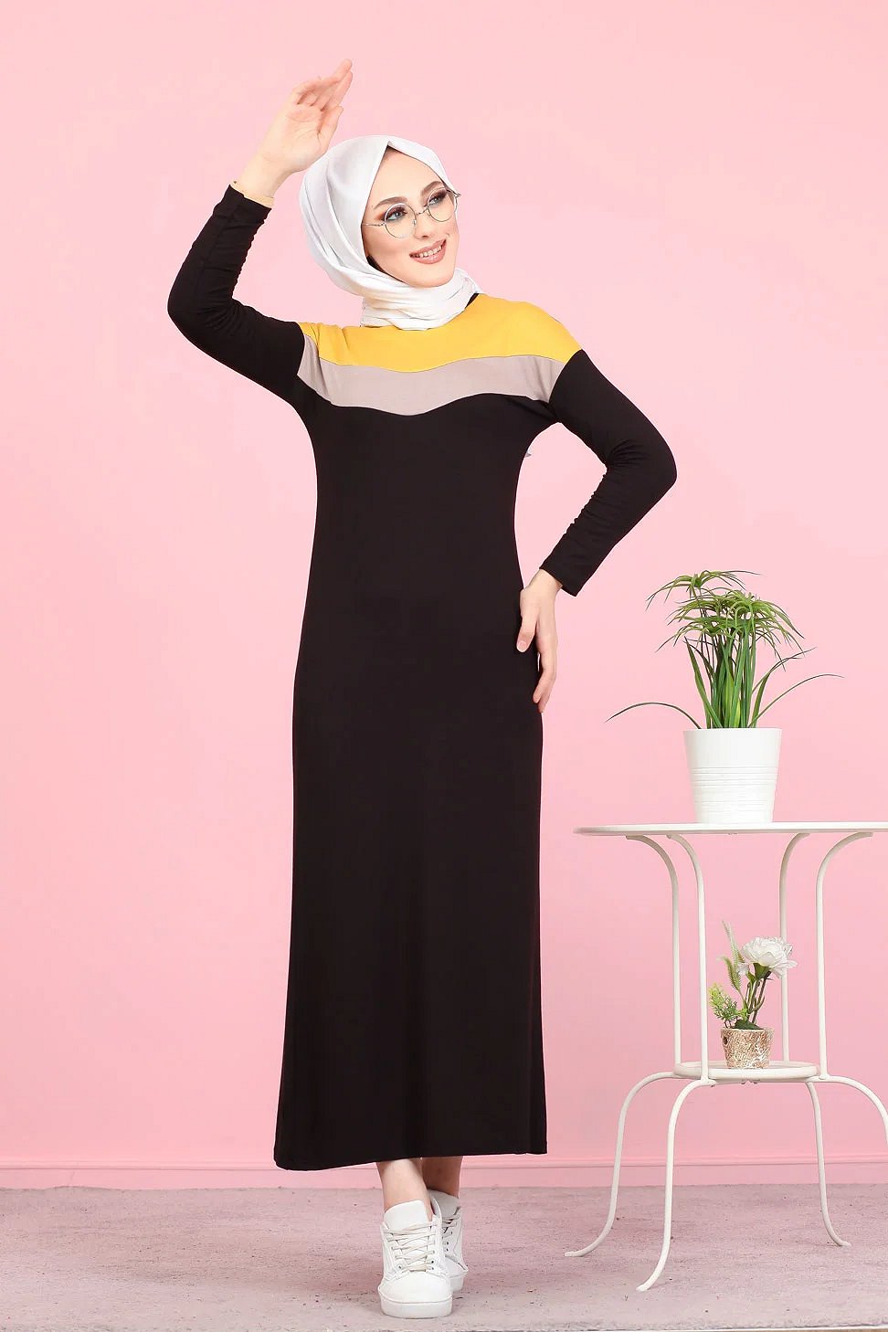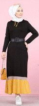 Robe longue avec capuche style Urban moderne (Vetement pour femme voilée) - Couleur noir et jaune moutarde - REF. 32256 (25.00 €) - En Promotion à 19.90 €