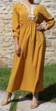 Robe longue féminine avec décoration écailles dorées et pompons - Couleur jaune - REF. 36103 (24.90 €)