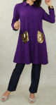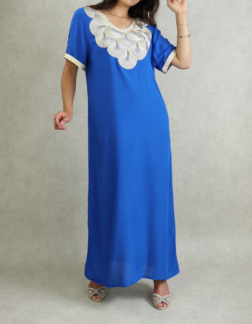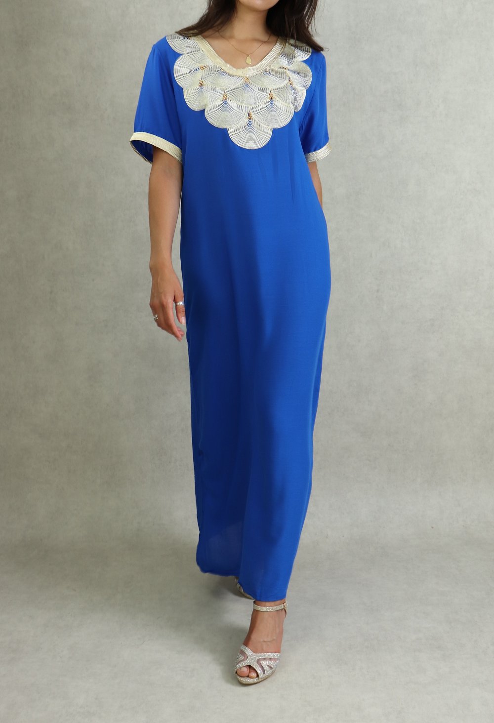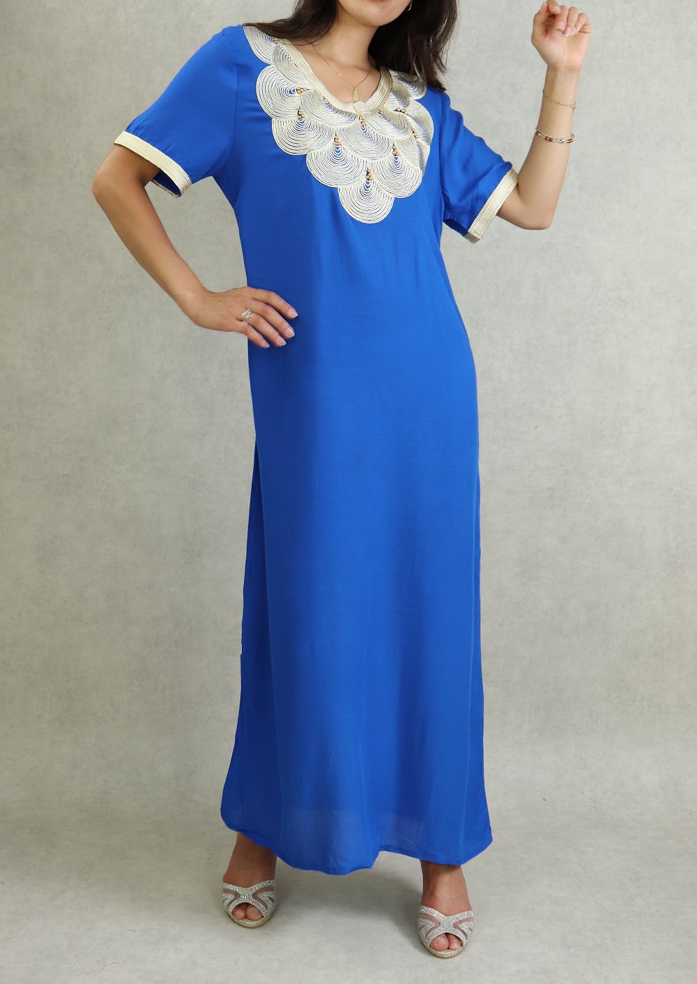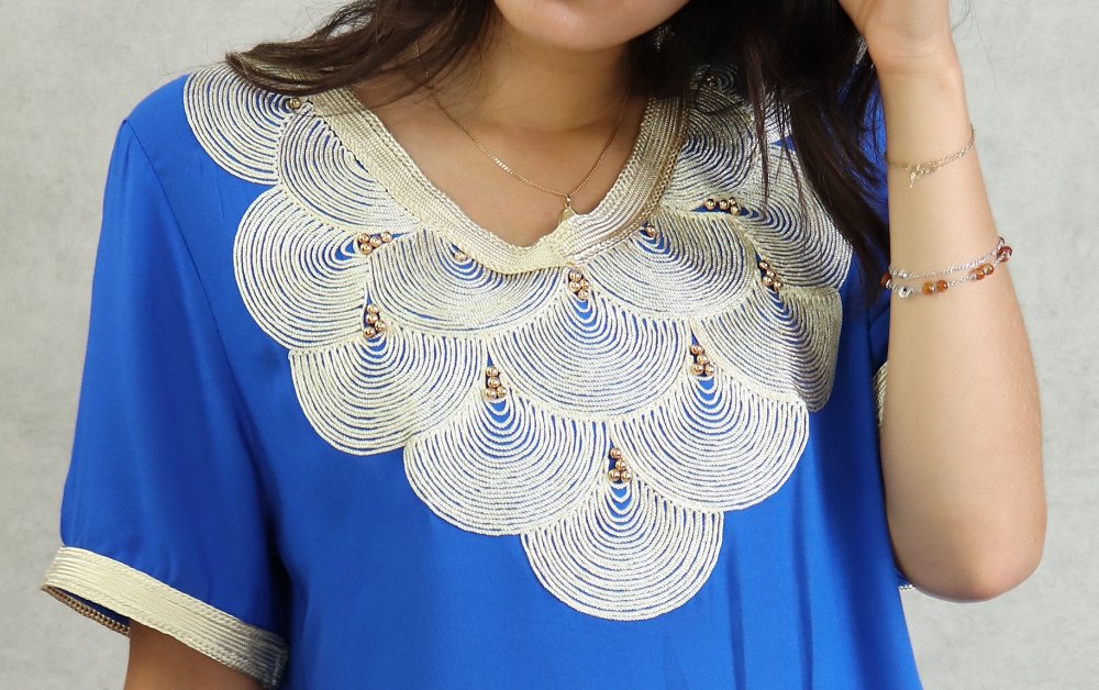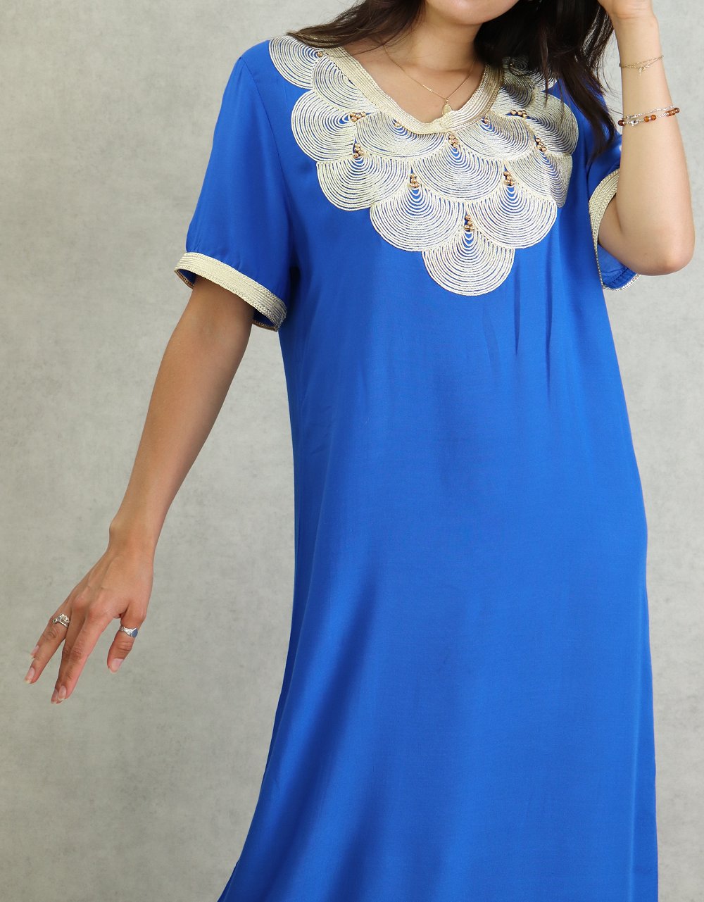 Robe orientale manches courtes avec de jolies broderies traditionnelles japonaises et perles dorées.