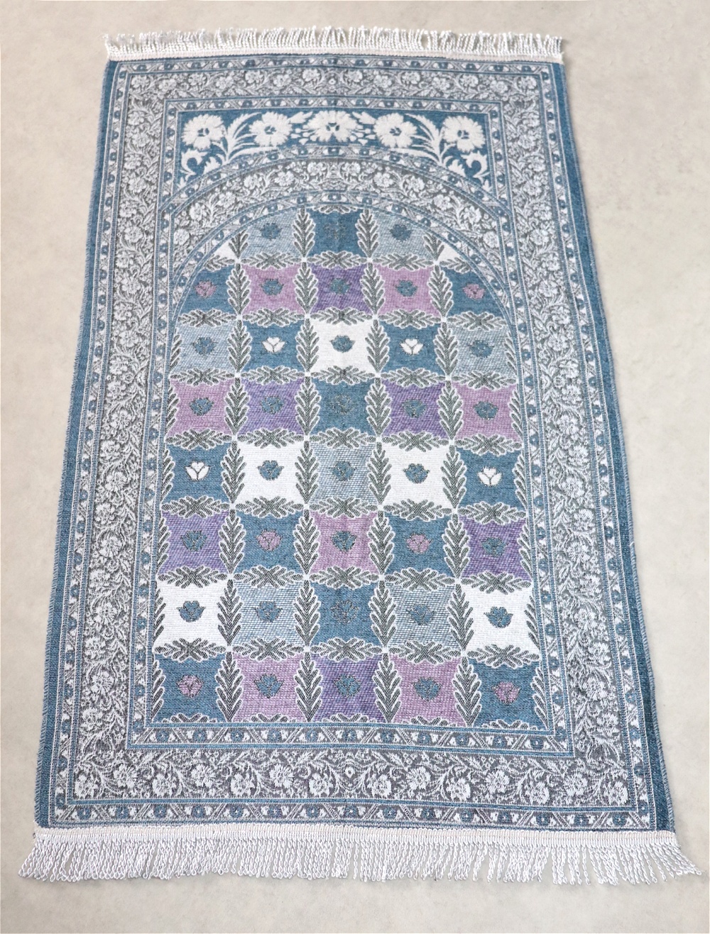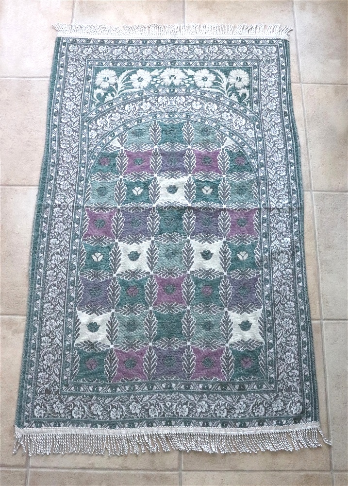 Grand Tapis de prière avec décorations islamique tissé en chenille (sajjada) - Couleur vert clair et Gris - REF. 37715 (6.90 €)