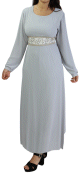 Robe longue fluide avec broderies blanches et dorées pour femme - Couleur gris clair - REF. 29800 (29.90 €)