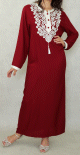 Robe en coton ample et évasée devant et dos brodés pour femme (Vêtement mastour et habillé pour hijab) - Couleur bordeaux - REF. 36668 (39.90 €)