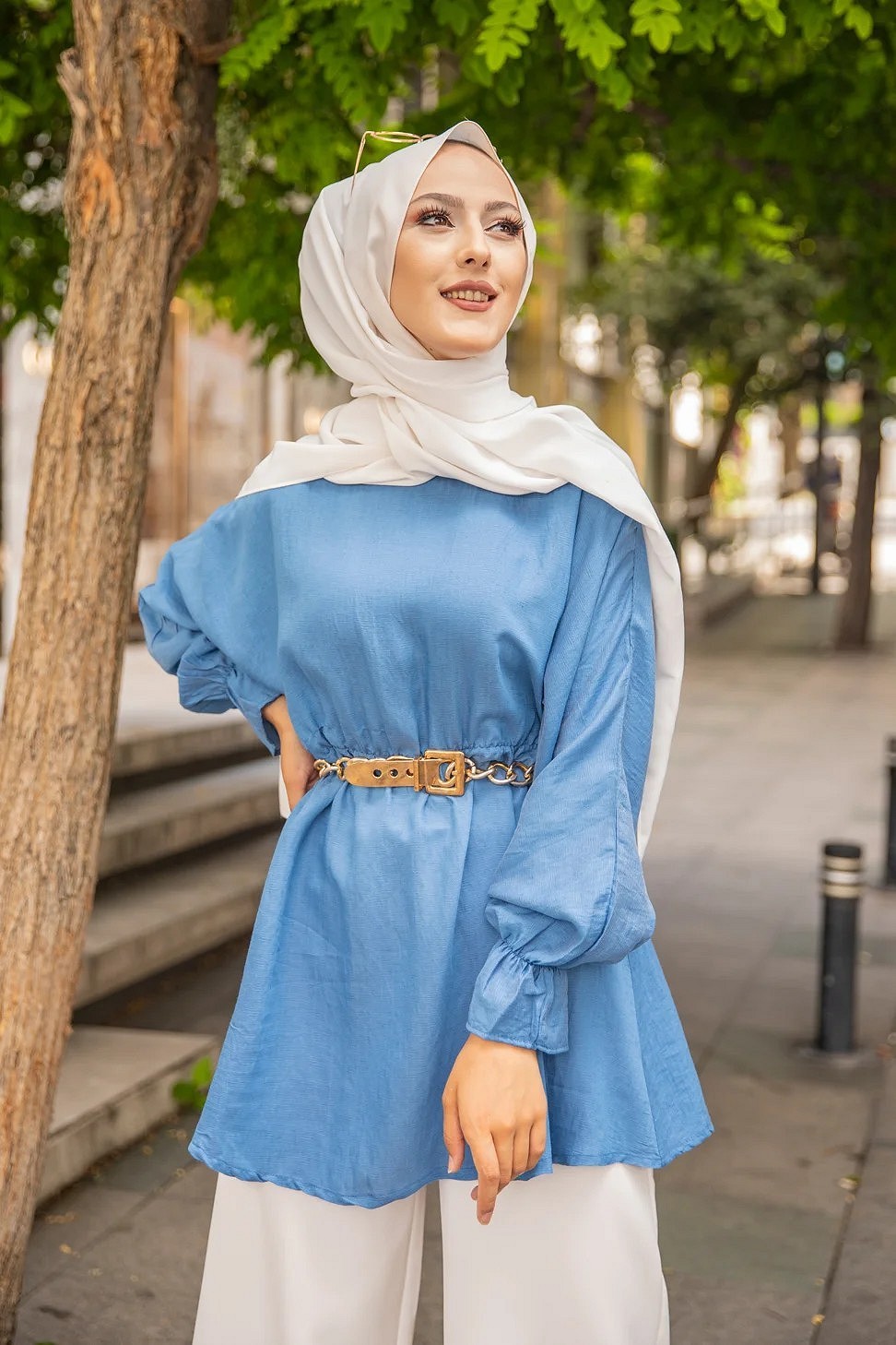 Tunique à rayures pour femme (Vêtement Hijab) - Couleur bleu clair - REF. 37152 (16.90 €)