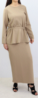 Ensemble en maille deux pièces tunique et jupe pour femme (Saison Automne-Hiver) - Couleur Taupe - REF. 33763 (39.00 €)