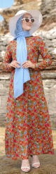 Robe musulmane longue à motif fleur multicouleur sur un fond de couleur Marron - REF. 33285 (24.90 €) - En Promotion à 19.00 €
