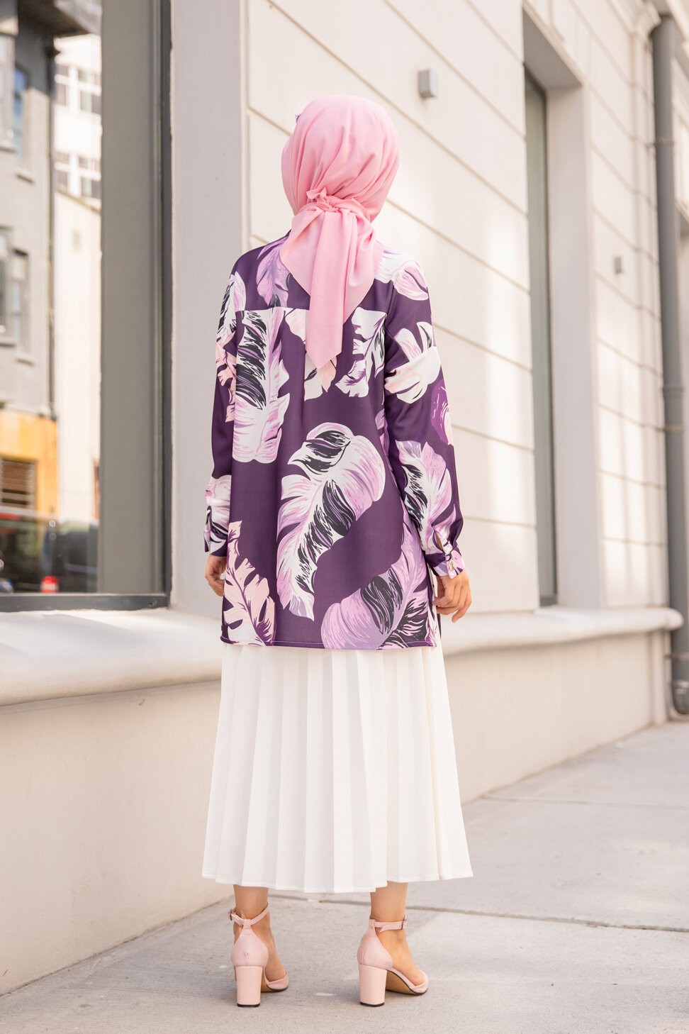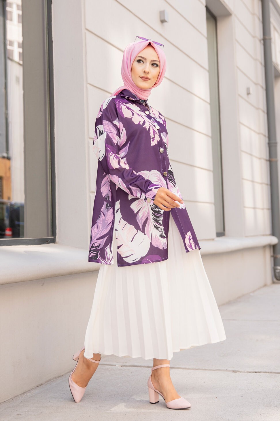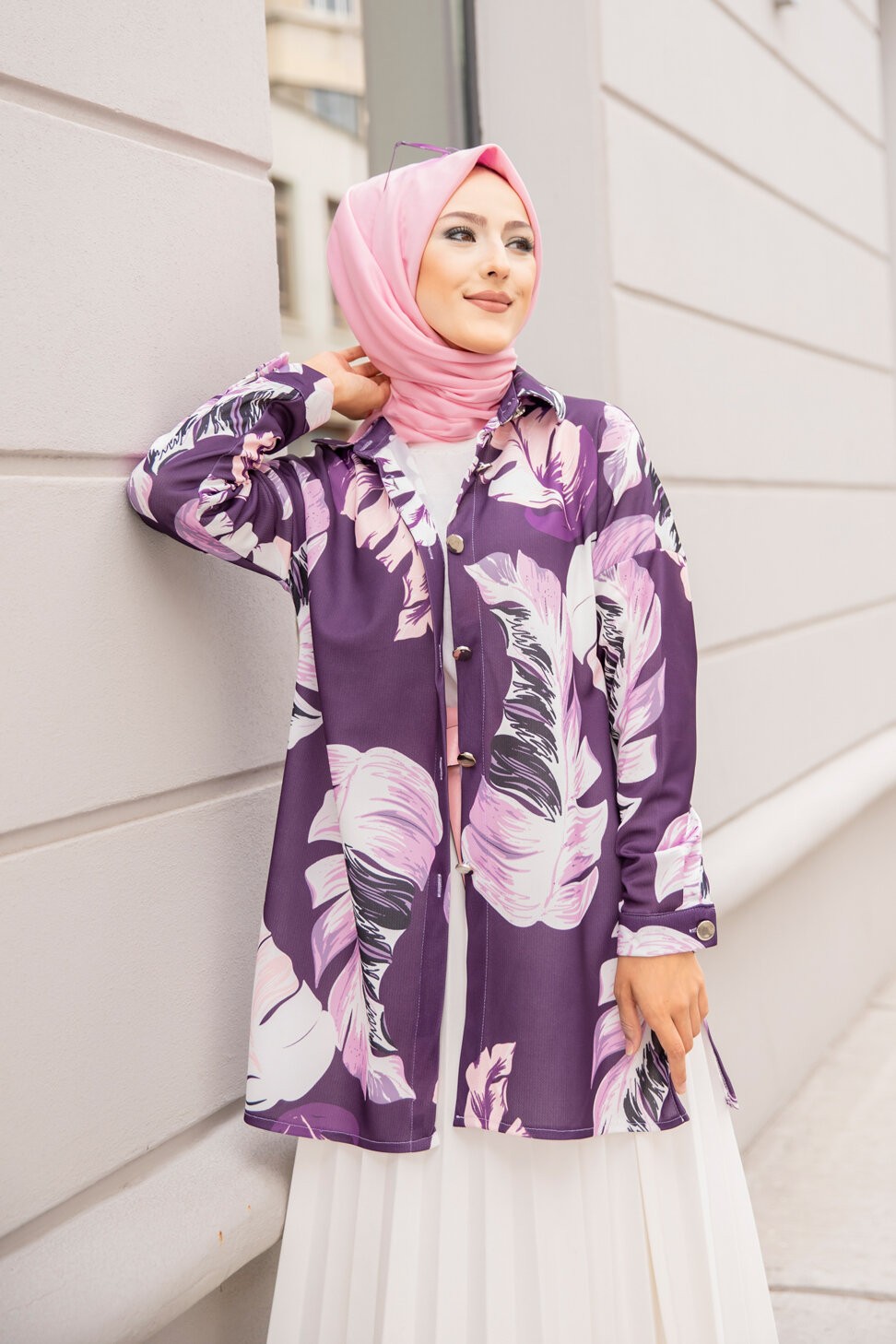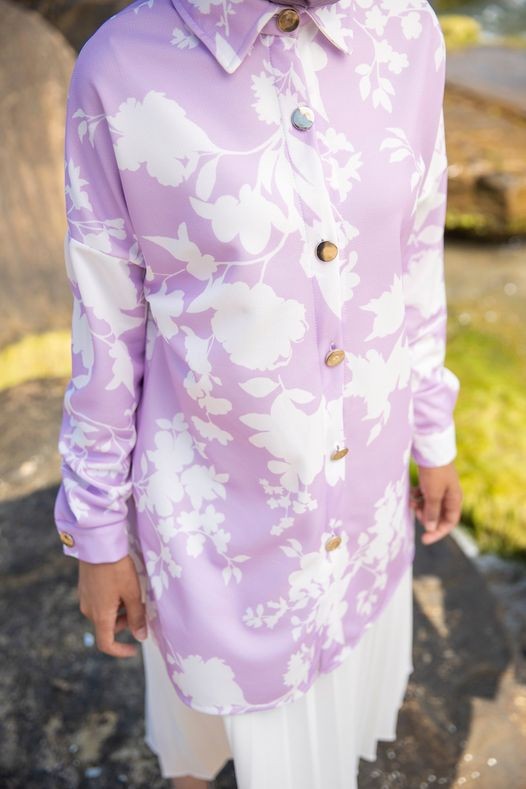 Tunique Chemise imprimee motifs fleurs (Vetement femme voilee) - Couleur Lilas