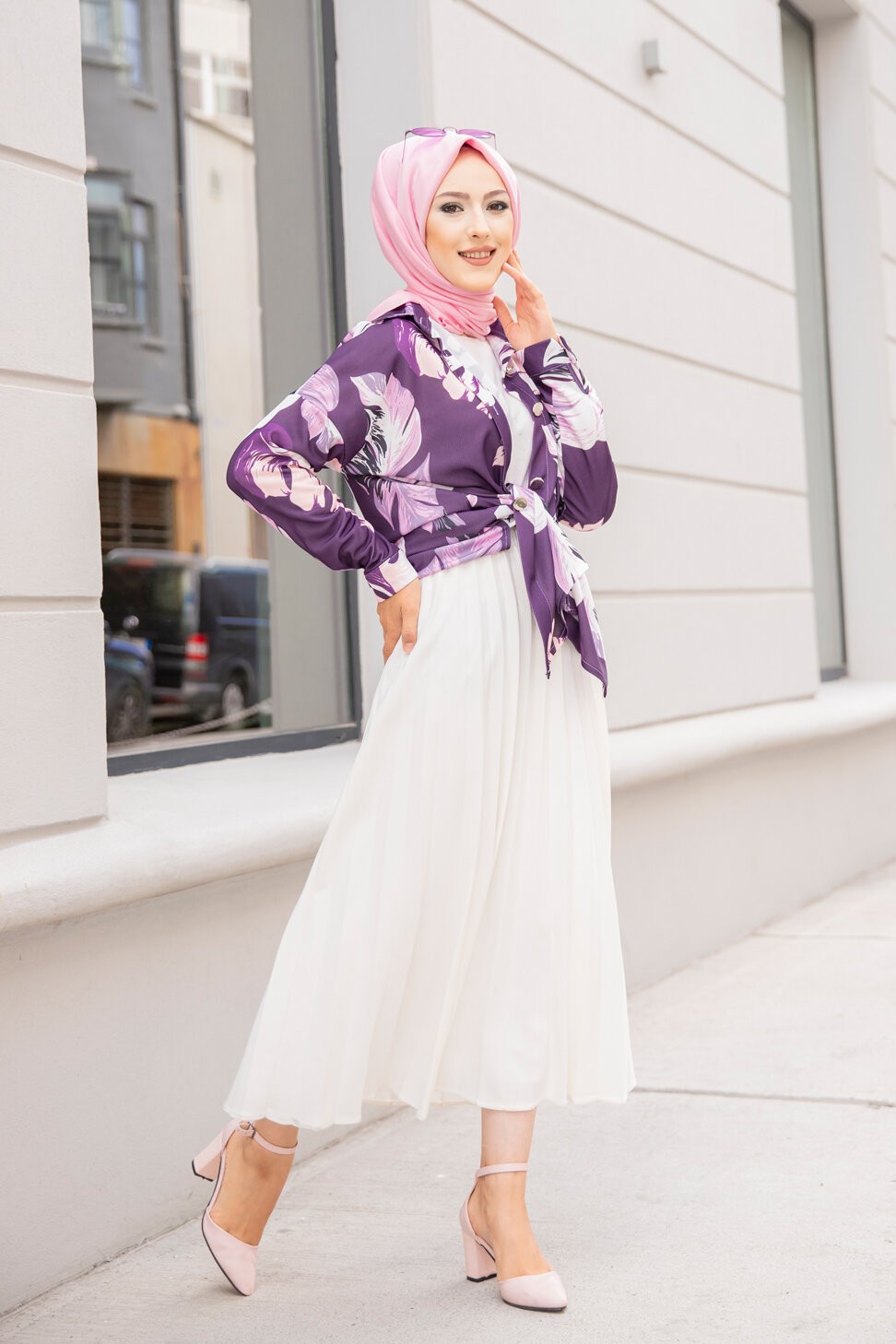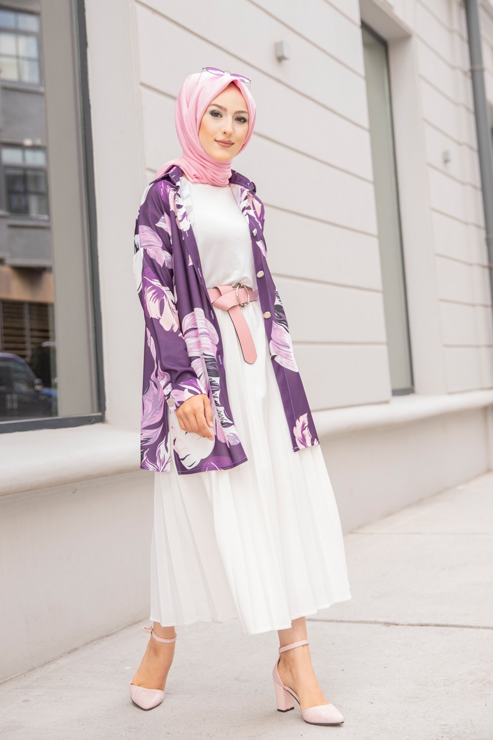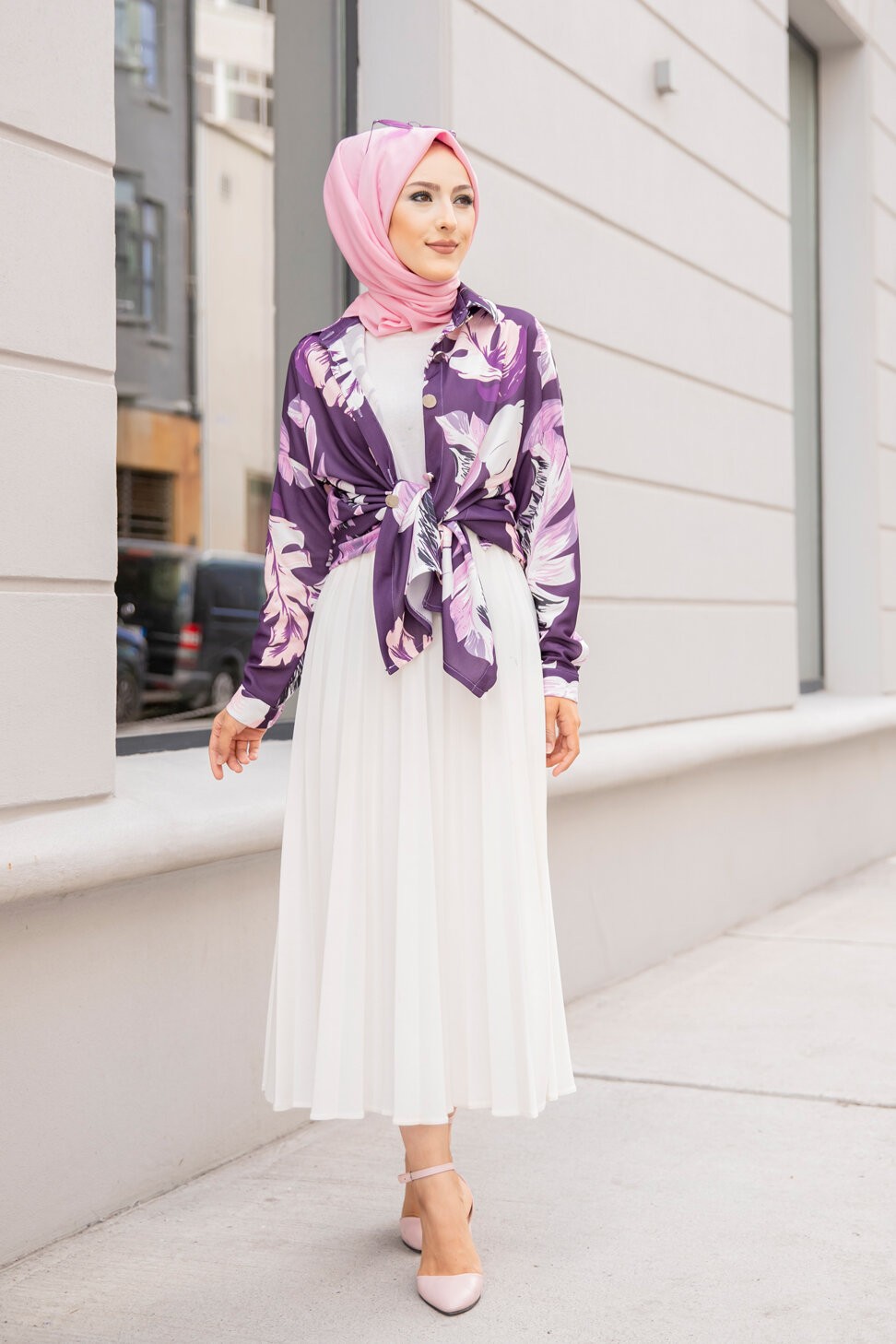 Tunique Chemise imprimee motifs fleurs (Vetement femme voilee) - Couleur Lilas