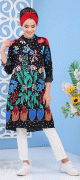Tunique longue et ample en viscose pour femme - Couleur noire à imprimé floral avec des motifs colorés - REF. 30564 (24.90 €) - En Promotion à 19.00 €