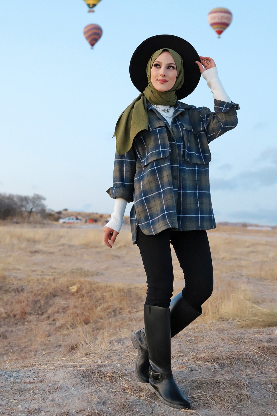 Chemise à carreaux (Boutique en ligne vêtement moderne pour femme musulmane) - Couleur bleu marine et kaki Vetement & Accessoire