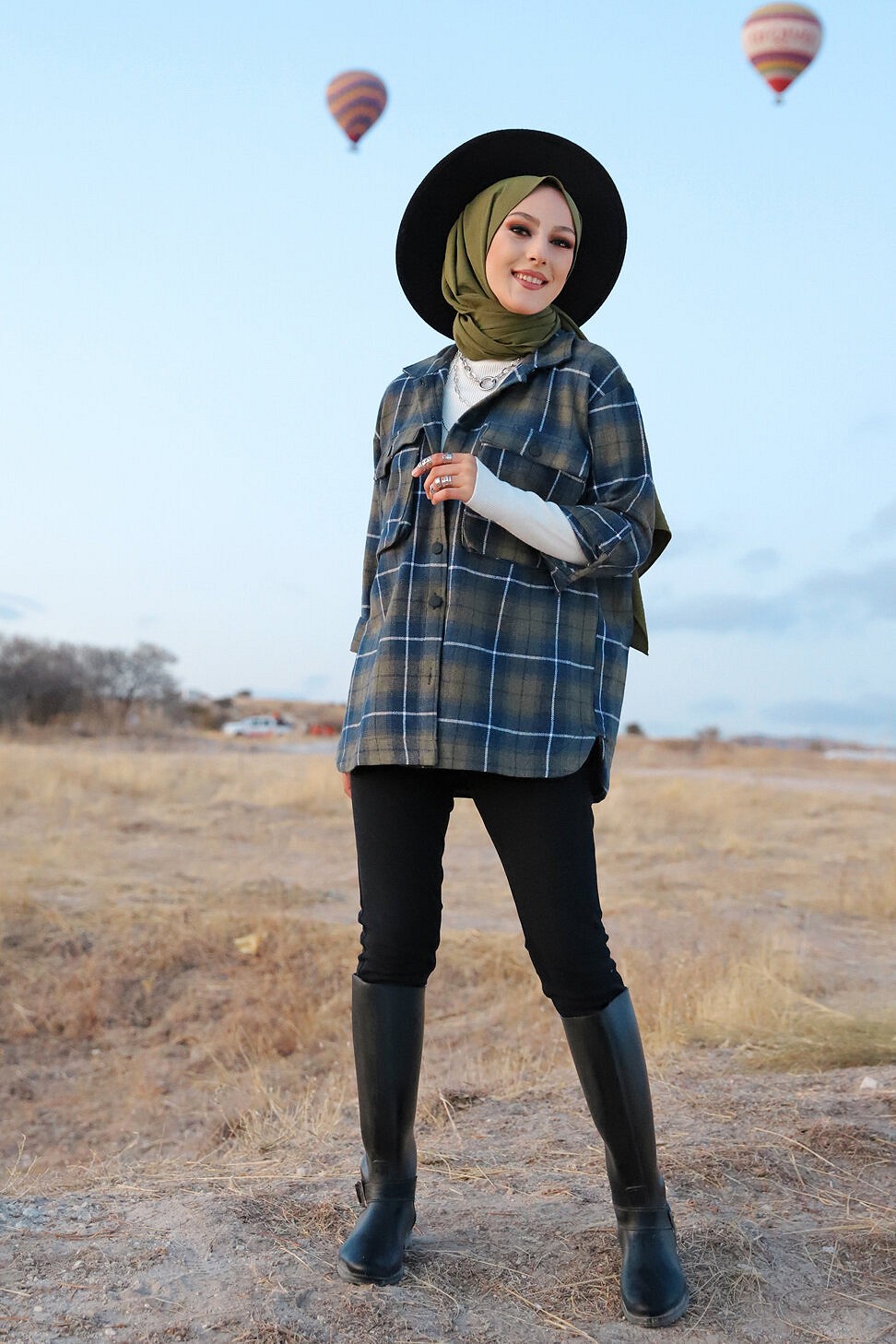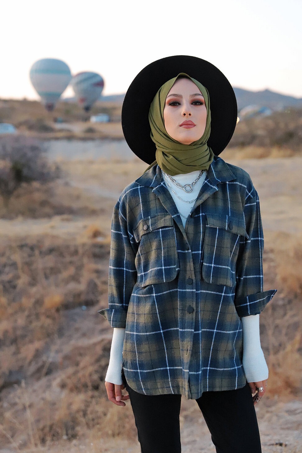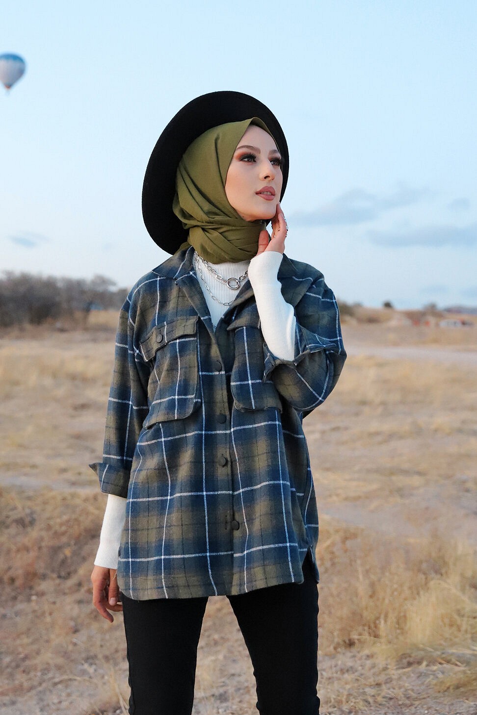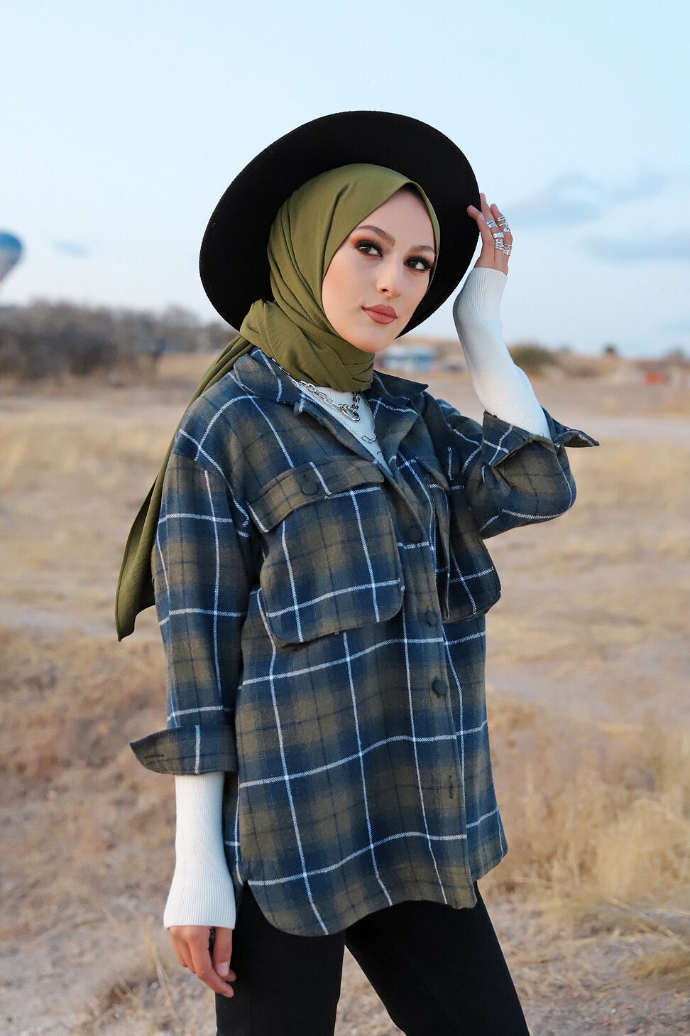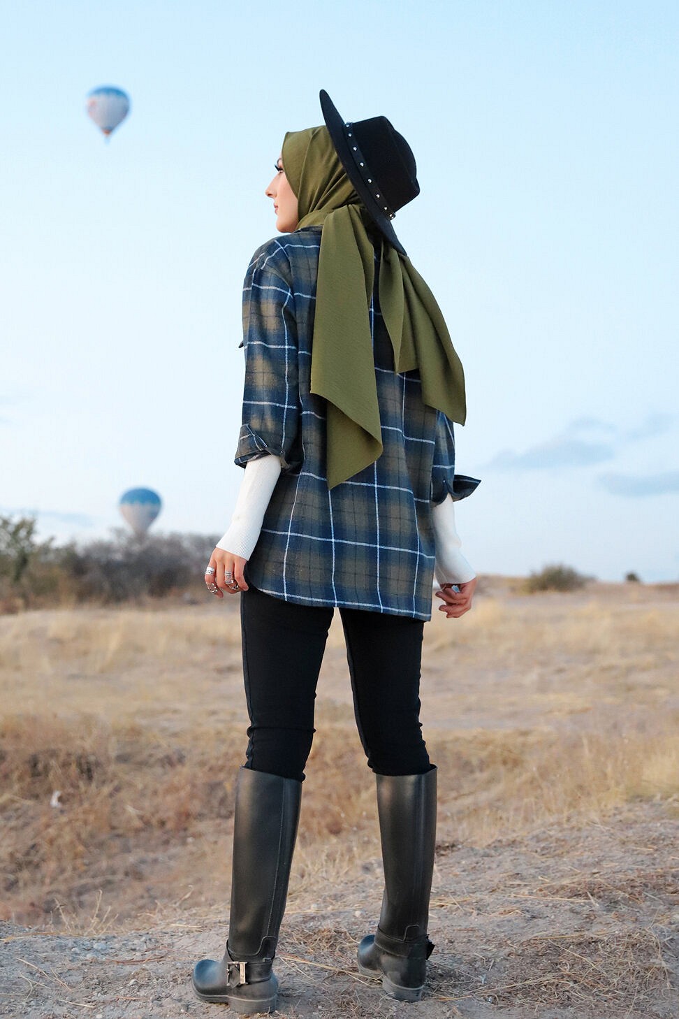Chemise a carreaux (Boutique en ligne vetement moderne pour femme musulmane) - Couleur bleu marine et kaki