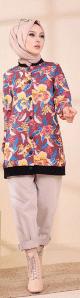 Veste Tunique avec motifs fleurs pour femme - Couleur prune - REF. 35651 (25.00 €)