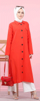Veste longue pour femme - style chemise (Vetement Modest Fashion) - Couleur rouge grenadine - REF. 32906 (29.90 €)