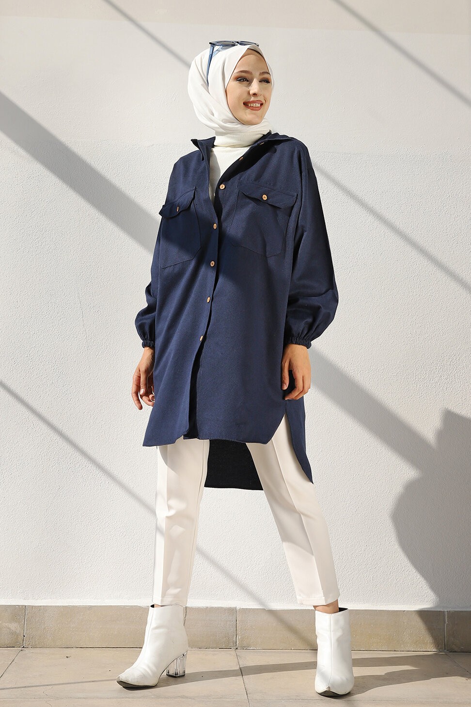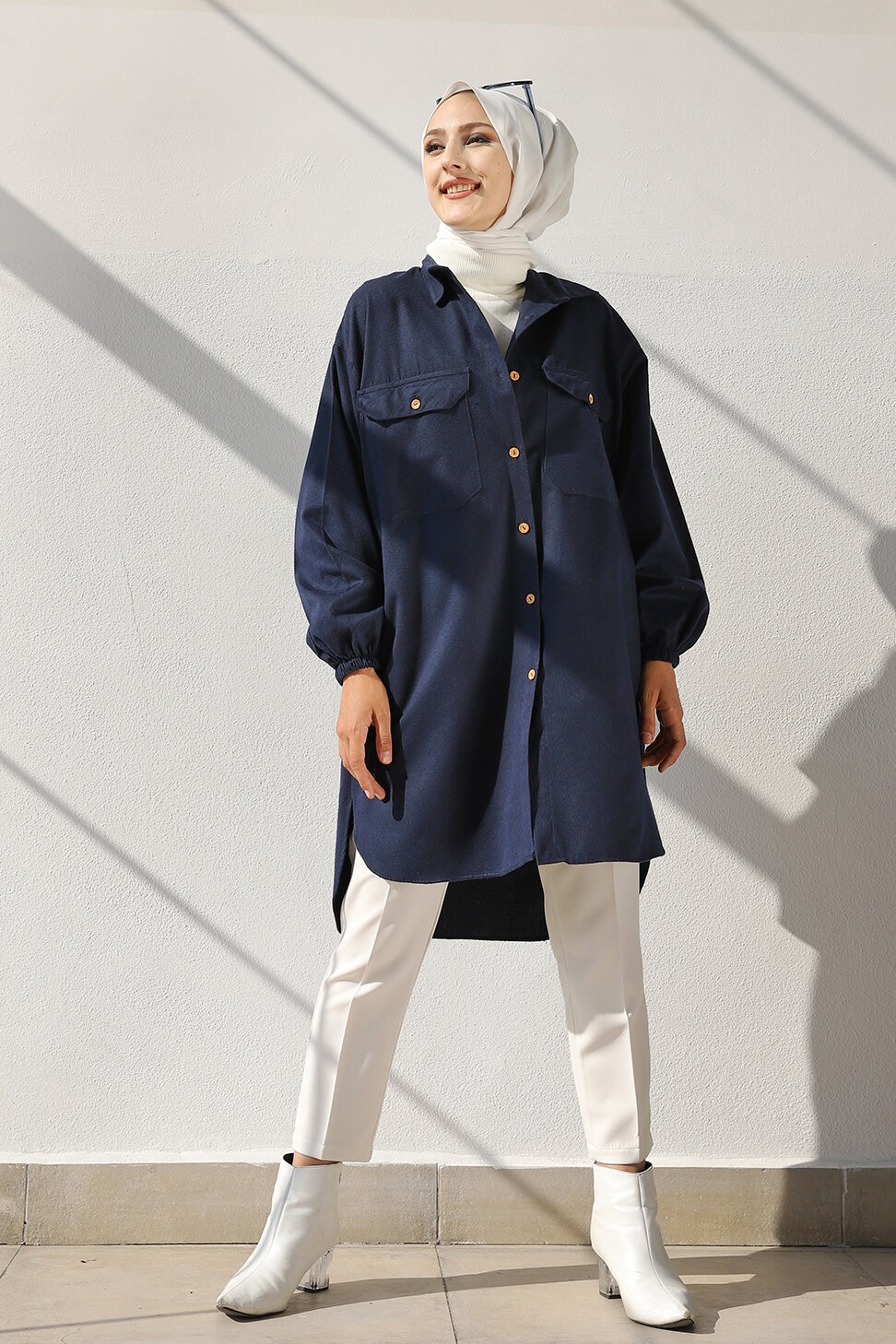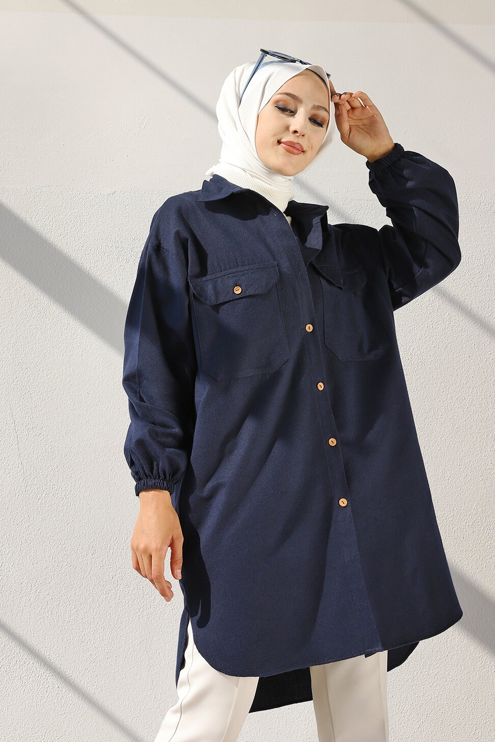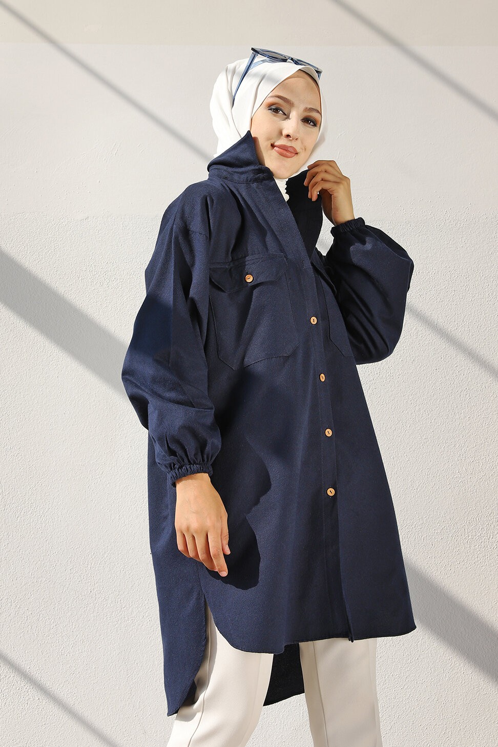 Chemise-Tunique ample pour femme (Boutique Musulmane en ligne de vêtement et Hijab) - Couleur bleu marine Vetement & Accessoire