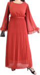 Robe longue fluide plissée avec manches évasées pour femme - Taille Standard - Couleur Brique - REF. 30173 (29.90 €)