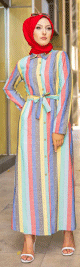 Robe longue à rayures avec ceinture pour femme voilée - Couleur Vert amande - REF. 33211 (29.90 €)