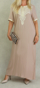 Robe orientale longue brodée manches courtes fluide et décontractée pour femme - Couleur Beige - REF. 33381 (29.00 €)