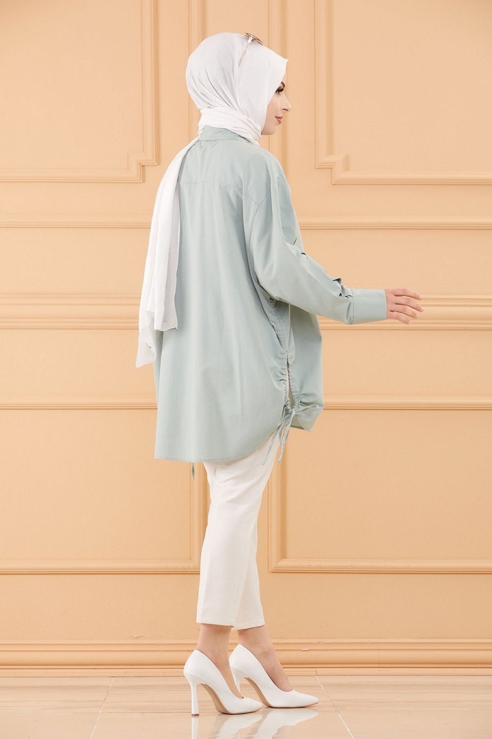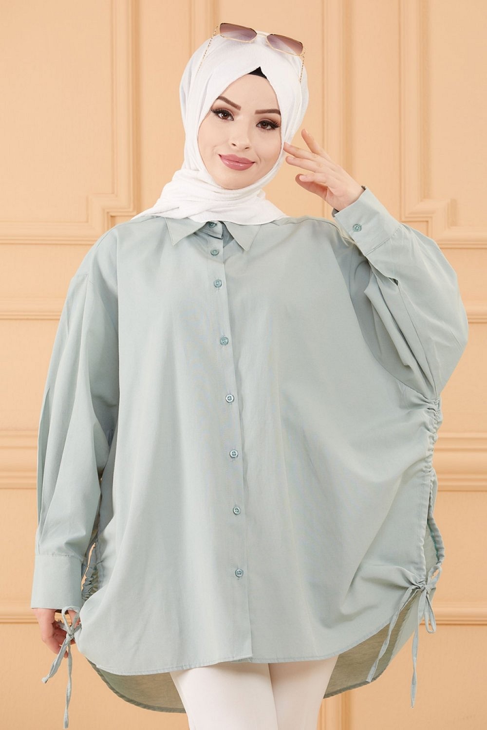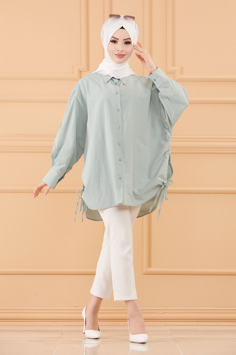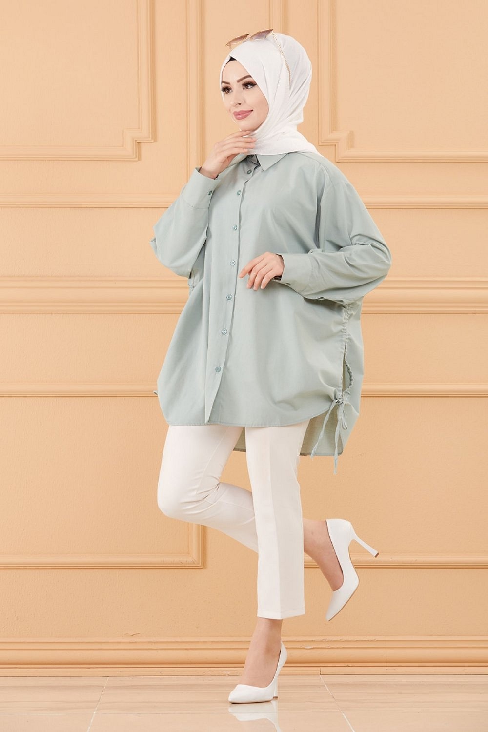 Chemise-Tunique fendue style habillé pour femme (Vêtement modeste pour hijab) - Couleur menthe Vetement & Accessoire