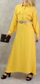 Robe longue casual boutonnée avec sa ceinture (Vetement hijab chic pour femme) - Couleur Jaune moutarde - REF. 33925 (35.00 €)
