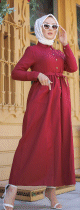 Robe chemise longue avec ceinture et grandes poches (Vetement pudique pour femme voilée) - Couleur bordeaux - REF. 33284 (28.00 €)