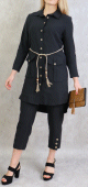 Ensemble Femme : Tunique et Pantalon avec Ceinture couleur Noir (Marque "Amelis Paris" élégance et modernité) - REF. 30347 (32.00 €) - En Promotion à 24.90 €