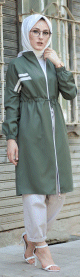 Veste moderne style décontracté avec fermeture zip (Vetement femme voilée) - Couleur kaki - REF. 32847 (24.90 €) - En Promotion à 19.00 €