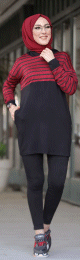 Tunique sportswear à rayures rouge bordeaux et noir pour femme (Modest Fashion) - REF. 32937 (19.90 €) - En Promotion à 16.90 €