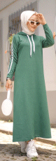 Robe sweat-shirt longue à capuche en coton look décontracté streetwear - Couleur vert émeraude - REF. 33235 (19.90 €)