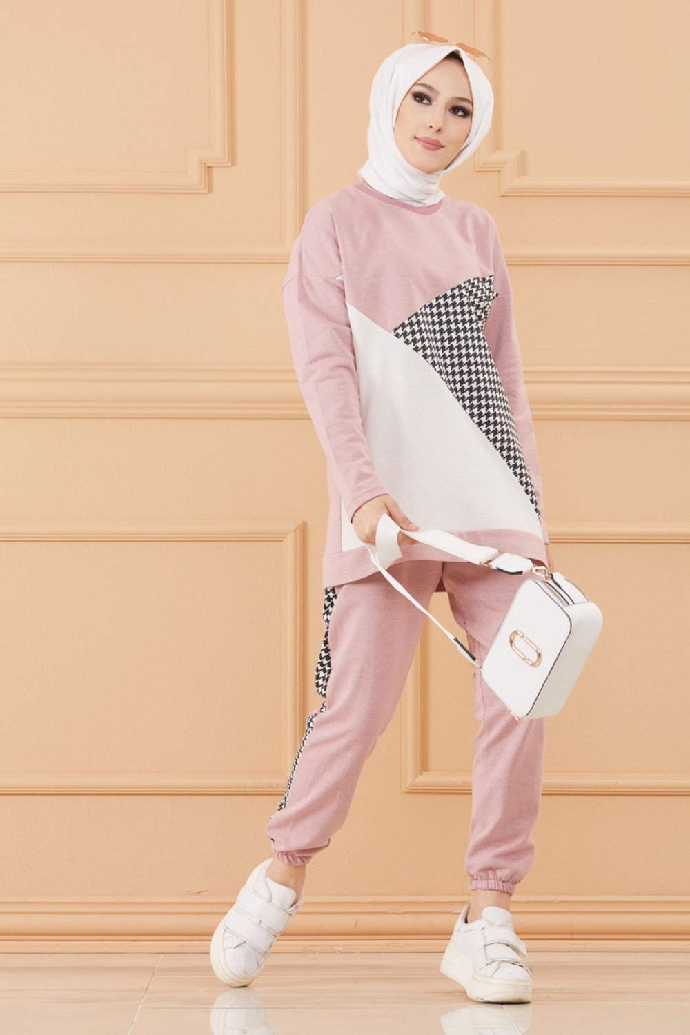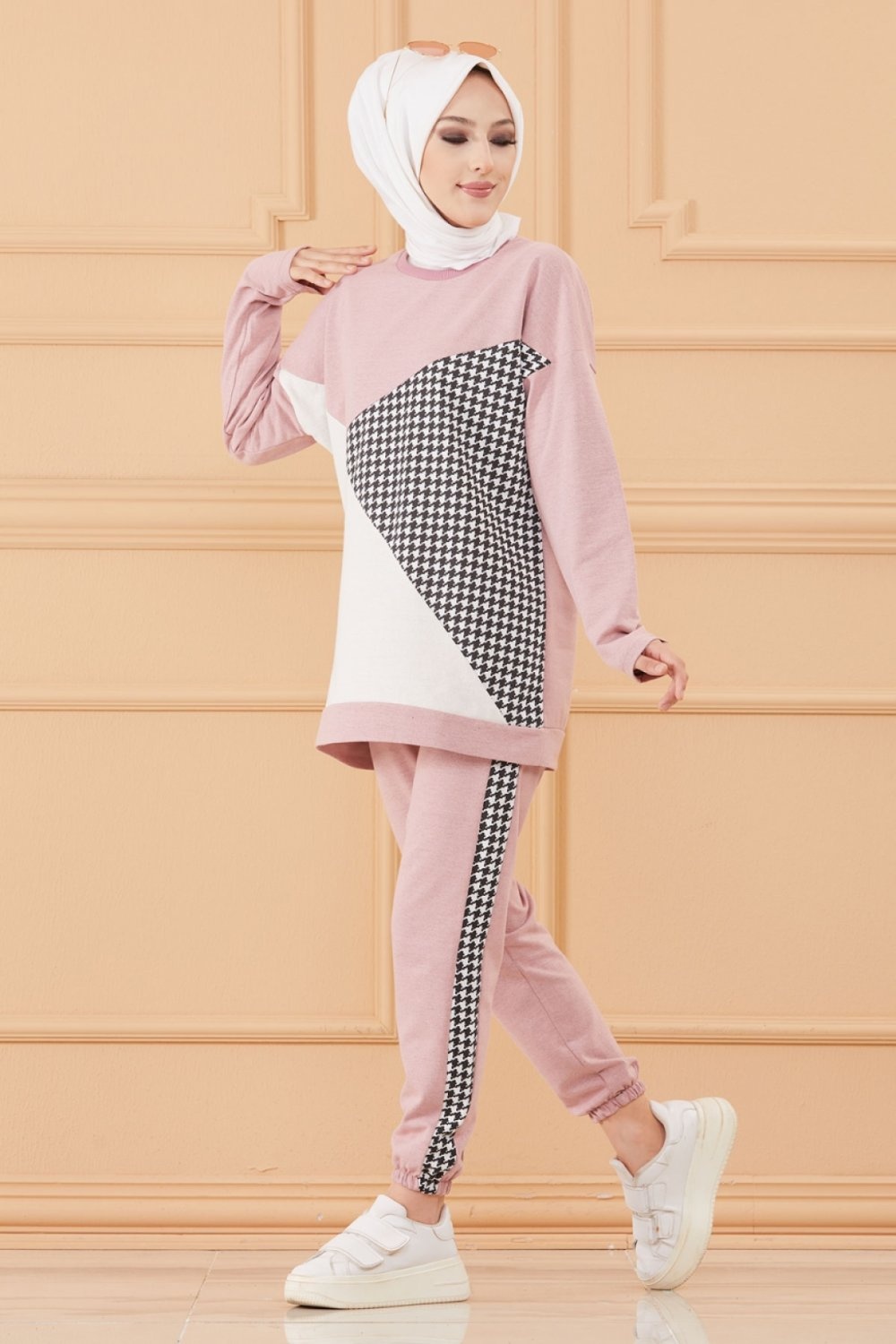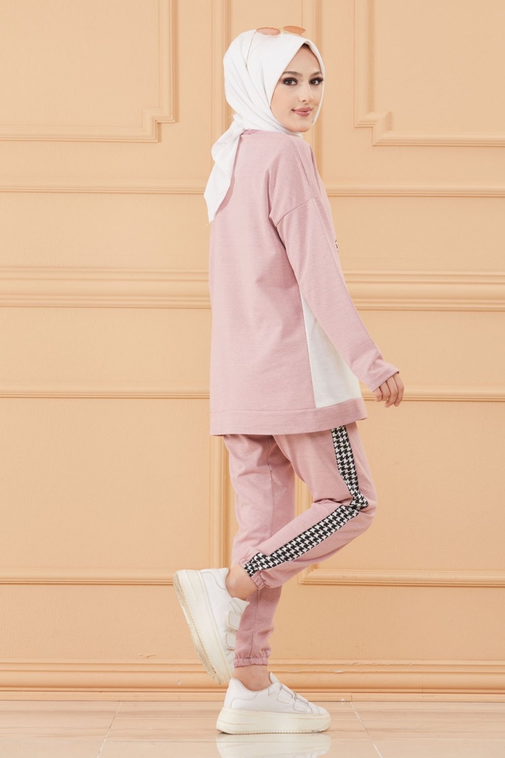 Survêtement original ample (Ensemble Décontracté et Sport pour femme musulmane) - Couleur rose poudré, noir et blanc Vetement & Accessoire
