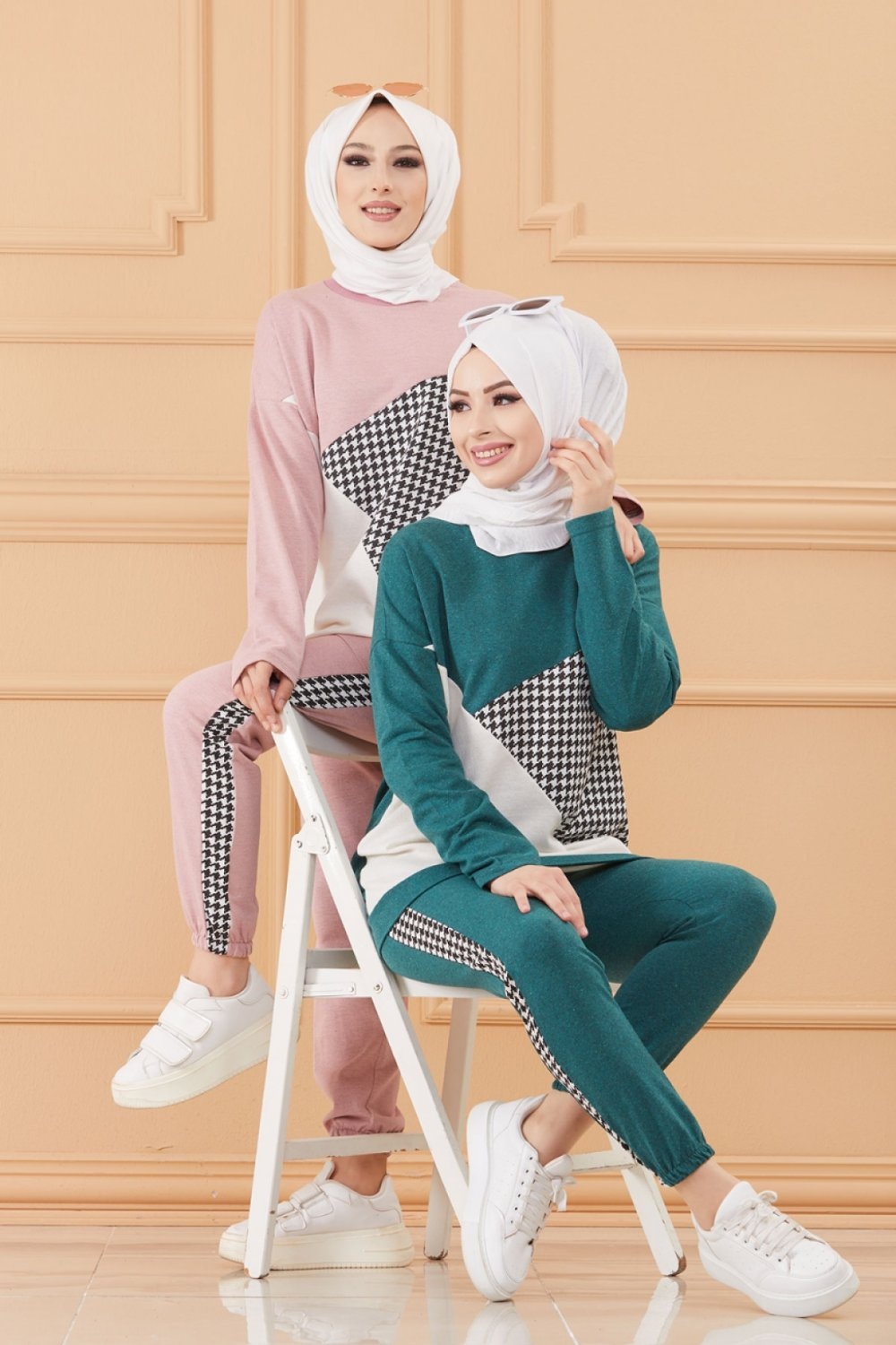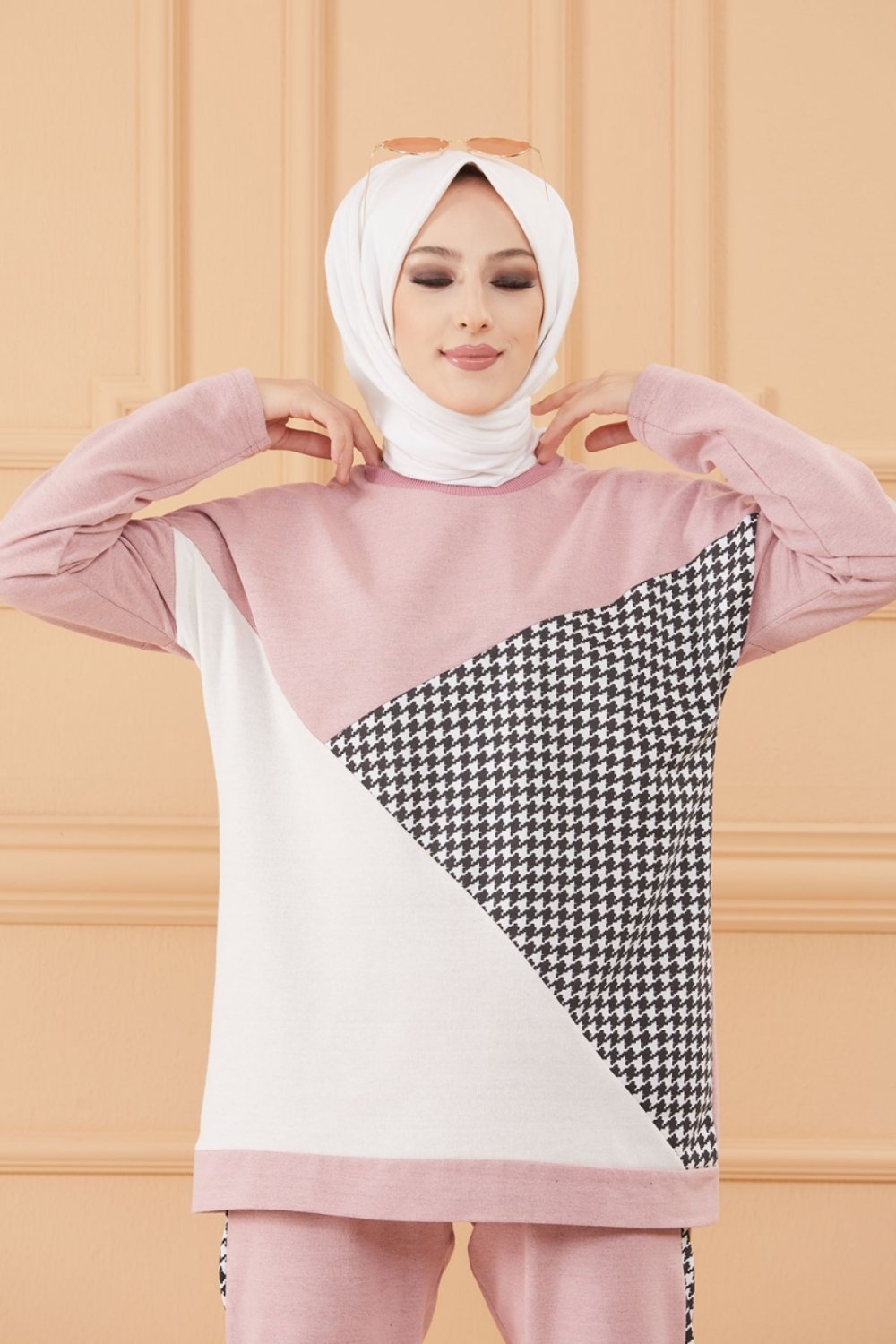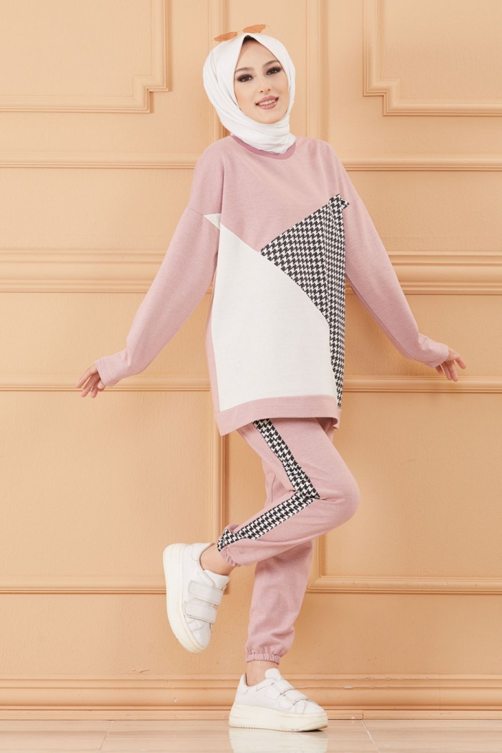 Survêtement original ample (Ensemble Décontracté et Sport pour femme musulmane) - Couleur rose poudré, noir et blanc Vetement & Accessoire