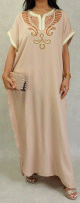 Robe longue de maison / d'été style oriental manche courte avec belle broderie pour femme - Couleur Beige - REF. 30952 (25.00 €)