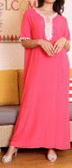 Robe marocaine d'été manches courtes avec broderies - Couleur Vieux Rose - REF. 32354 (28.00 €)