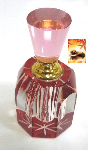 Bouteille cristal avec reflets roses avec sa boite cadeau.