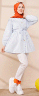 Tunique à rayures avec ceinture pour femme (Boutique Hijab en ligne - France) - Couleur bleu ciel - REF. 35754 (19.00 €)