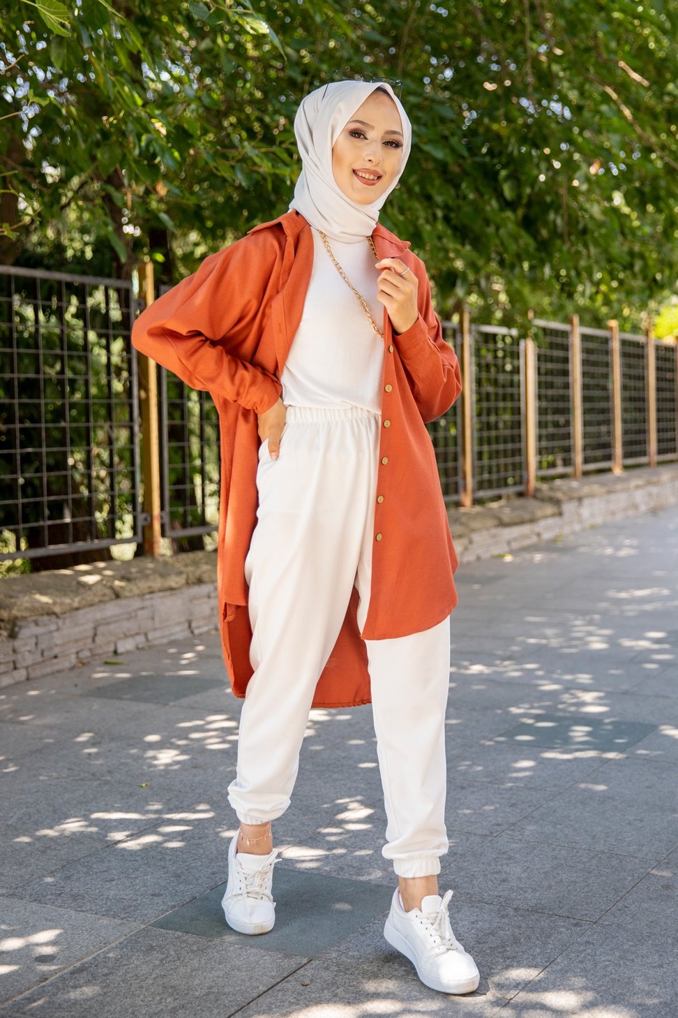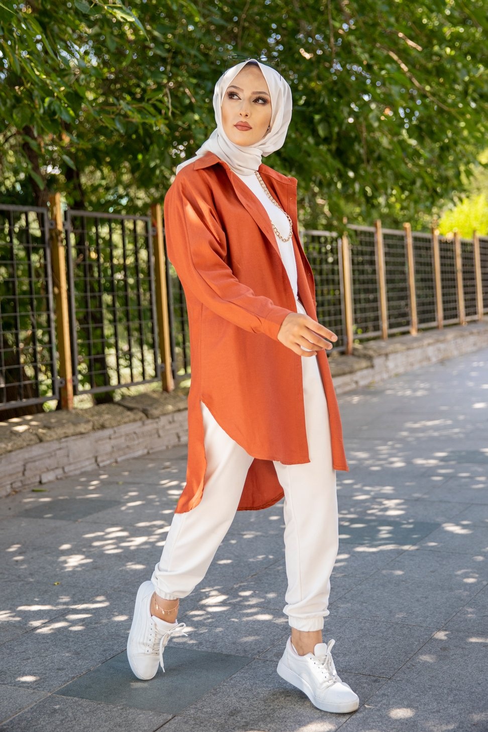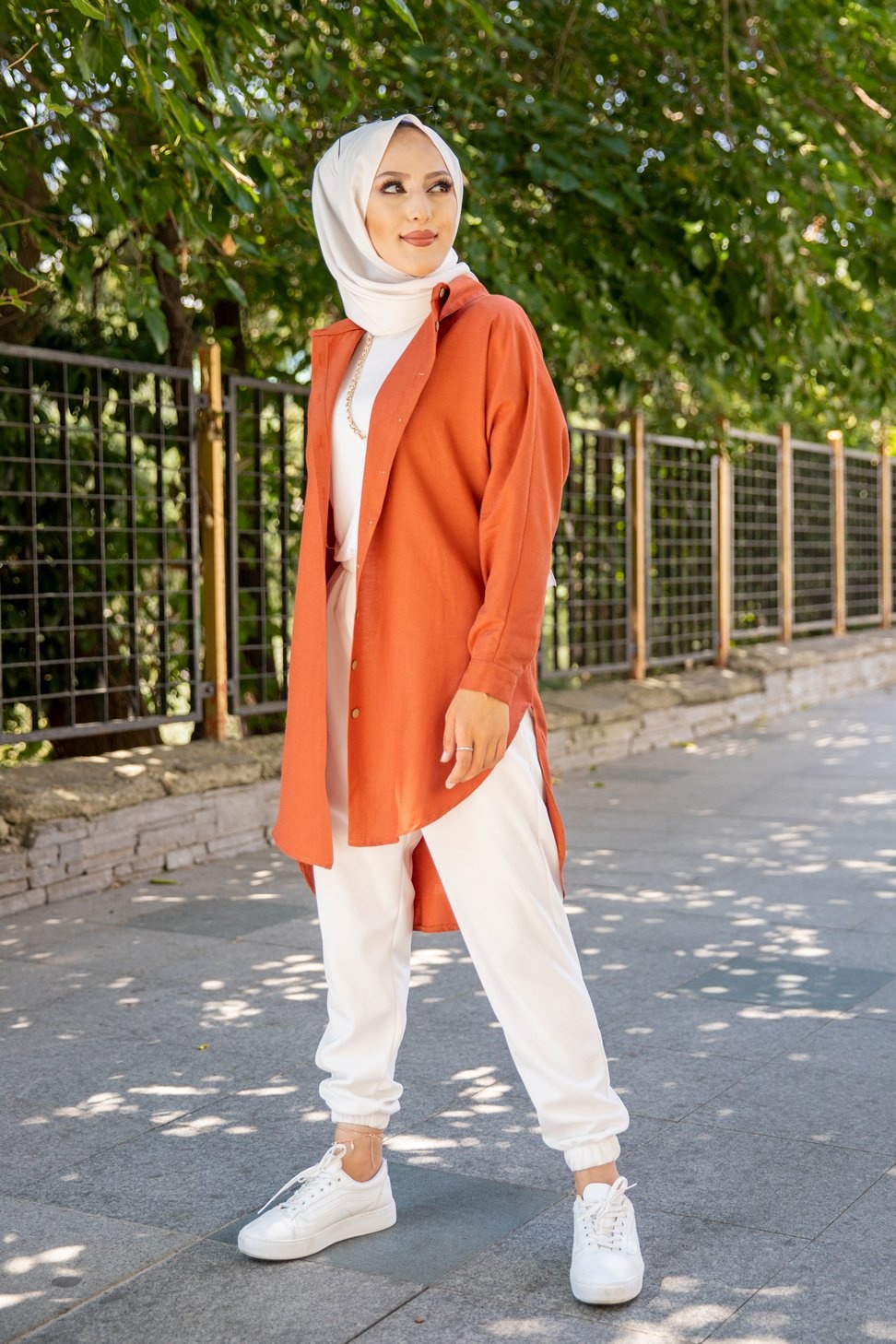 Chemise longe pour femme (Vetement pour hijab) - Couleur brique