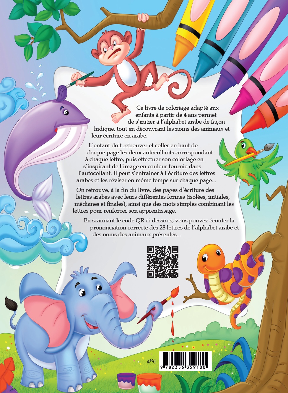 Jecris et je colorie mes lettres arabes avec les animaux (+ 56 stickers) -
