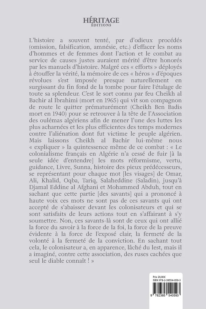 « Le colonialisme français en Algérie n’a cessé de fuir [à la seule idée d’entendre] les mots réformisme, vertu, guidance, Livre, Sunna, histoire des pieux prédécesseurs, se représentant pour chaque mot [les visages] de Omar, Ali, Khalid, Oqba, Tariq, Salaheddine (Saladin), jusqu’à Djamal Eddine al Afghani et Mohammed Abduh, tout en sachant que cette partie [des savants] qui a prononcé à haute voix ces mots ne sont pas de ces savants qui ont accepté de s’abaisser devant les colonisateurs et qui se sont satisfaits de leurs actions tout en s’affairant à s’y soumettre. Non, ces savants-là sont de ceux qui ont allié la force du savoir à la force de la foi, la force de la preuve évidente à la force de l’exposé clair, la fermeté de la volonté à la fermeté de la conviction. En sachant tout cela, le colonisateur a, en apparence, lâché du lest, mais il a imaginé, contre cette association, des ruses cachées que seul le diable connaît ! »