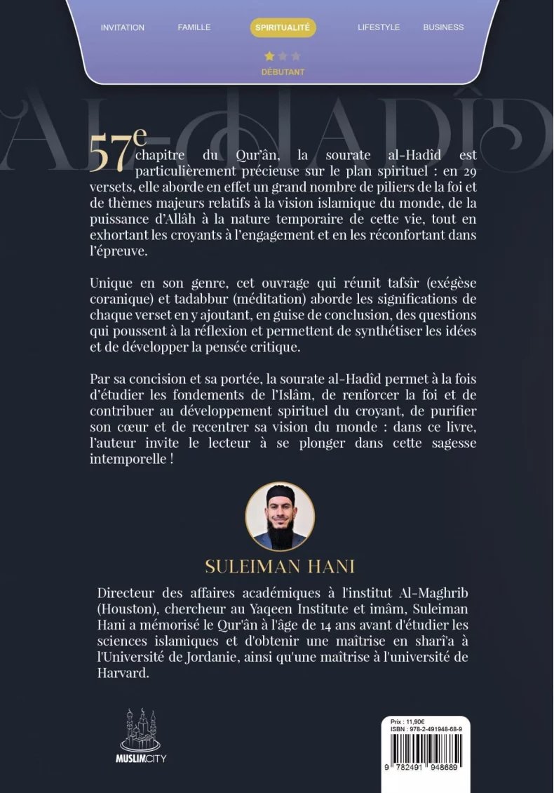 Par sa concision et sa portée, la sourate al-Hadîd permet à la fois d’étudier les fondements de l’Islâm, de renforcer la foi et de contribuer au développement spirituel du croyant, de purifier son cœur et de recentrer sa vision du monde : dans ce livre, l’auteur invite le lecteur à se plonger dans cette sagesse intemporelle !