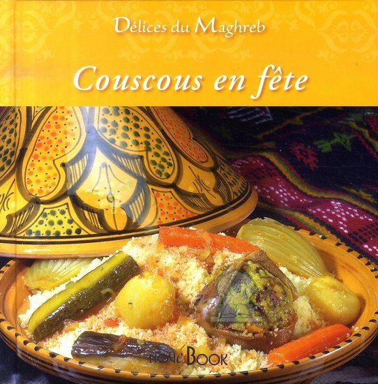 Un livre de recettes sur la préparation du couscous dans la collection "Délices du Maghreb", avec des photos illustrées en couleur.