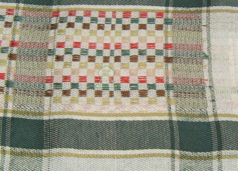 Foulard carré blanc avec motifs en couleurs.