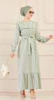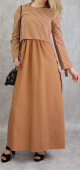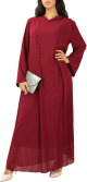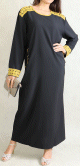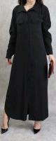 Abaya noire brodée argent "Kalthoum" avec son foulard (echarpe couleur noire unie).